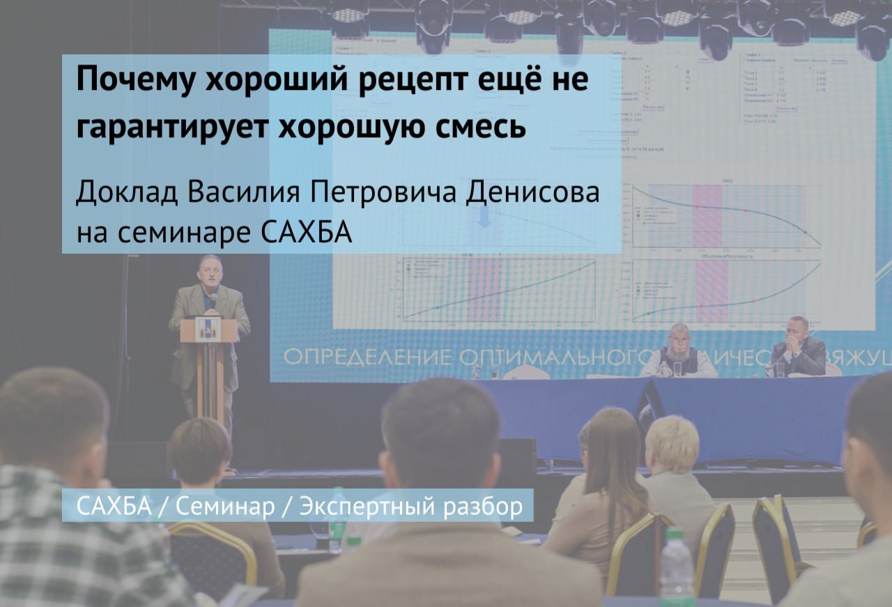 Одна из ключевых мыслей доклада состоит в том, что главная проблема отрасли часто связана не с нехваткой стандартов, а с их исполнением. До сих пор встречаются один пробный замес вместо нескольких, рецепты по аналогии из другой лаборатории, подбор вяжущего почти только по воздушным пустотам, несоблюдение температурных режимов и отсутствие актуализации составов в течение многих лет. Формально документация может выглядеть корректно, но в реальном производстве такая смесь нередко оказывается нестабильной.